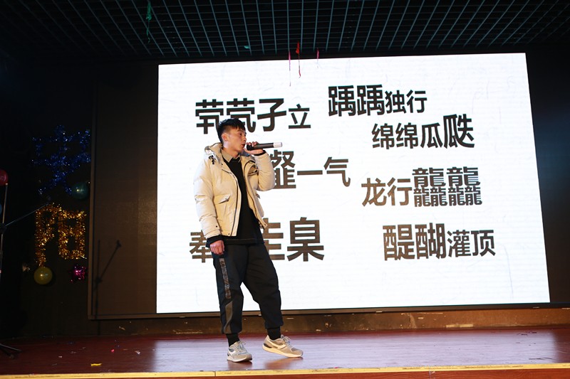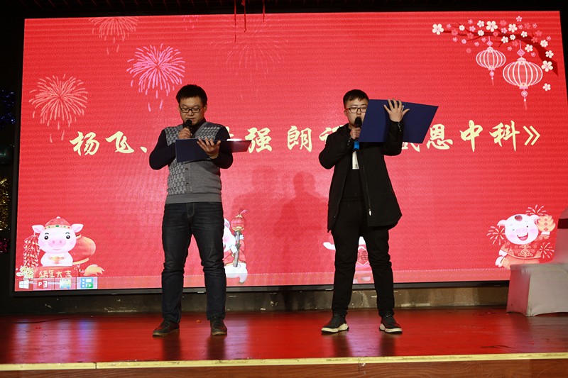 頒發(fā)各項(xiàng)獎(jiǎng)項(xiàng)中穿插有節(jié)目表演,各部門各項(xiàng)目人員積極踴躍的參與表演了節(jié)目,節(jié)目形式有相聲、小品、唱歌、樂器獨(dú)奏、朗誦等。